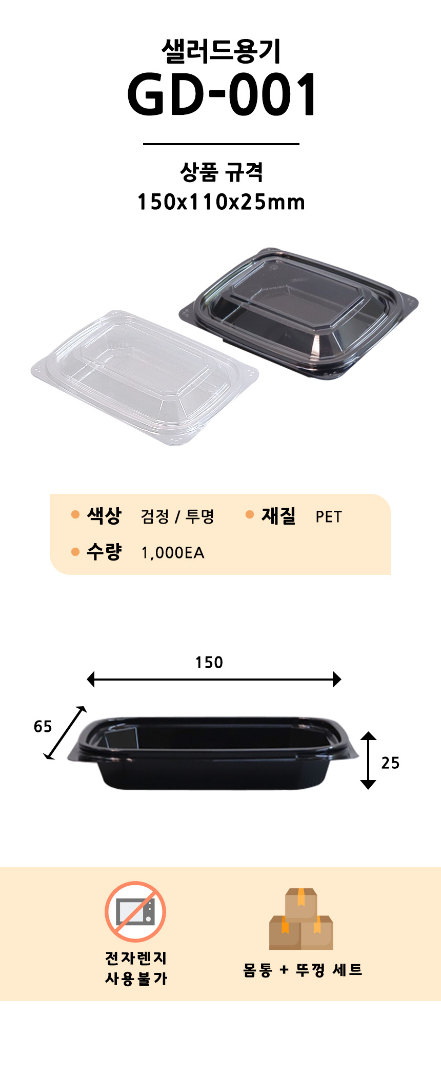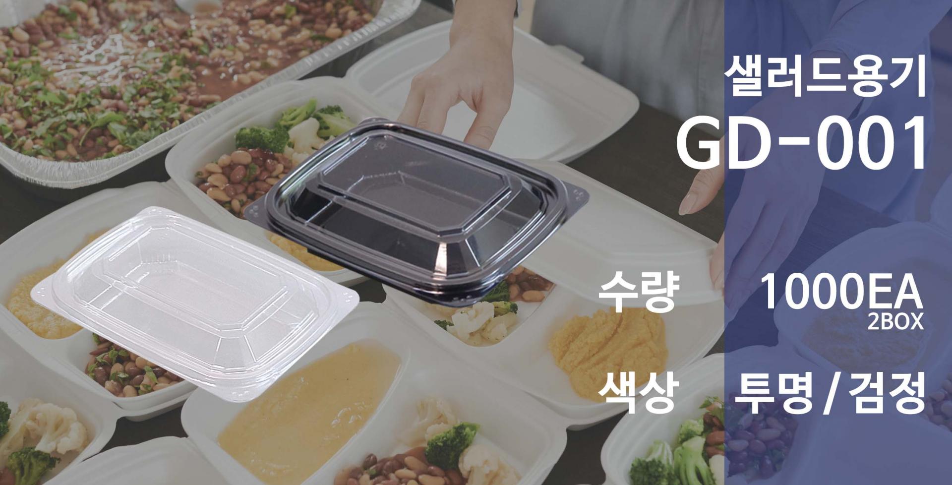 201호 샐러드용기 D-001(몸통+뚜껑)세트 / 1000EA / 사각반찬용기