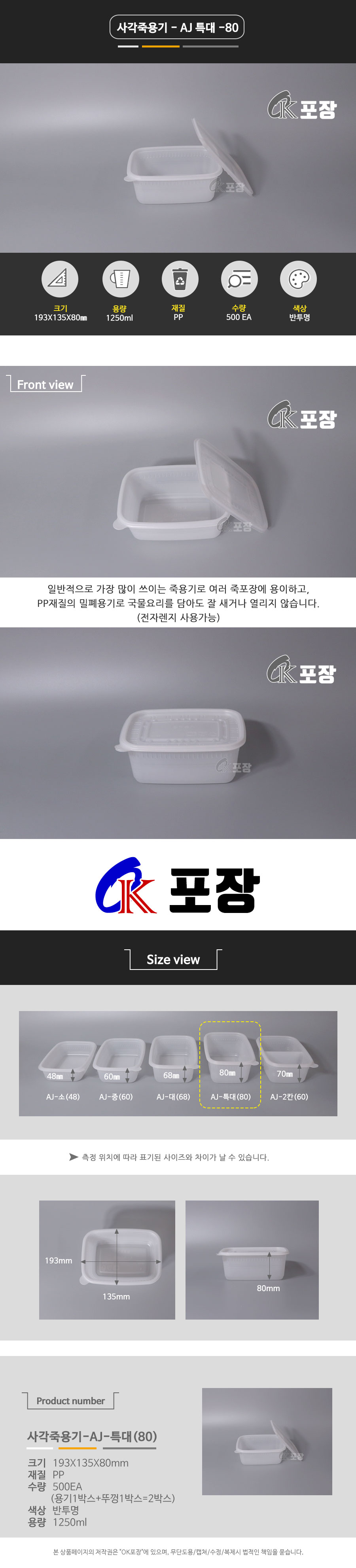 AJ-사각죽용기 -특대(몸통+뚜껑)세트 / 500개
