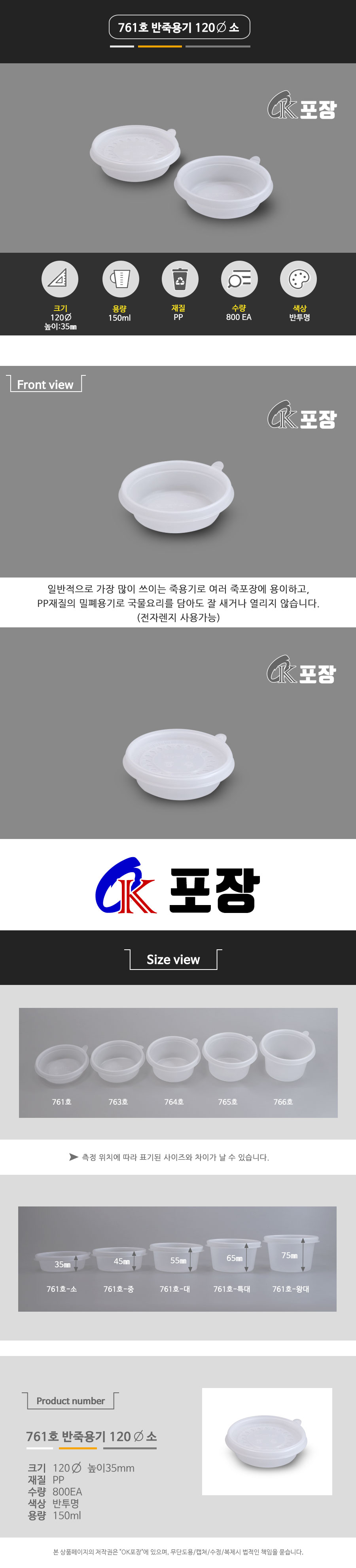 761호 반죽용기 - 소 / 800EA