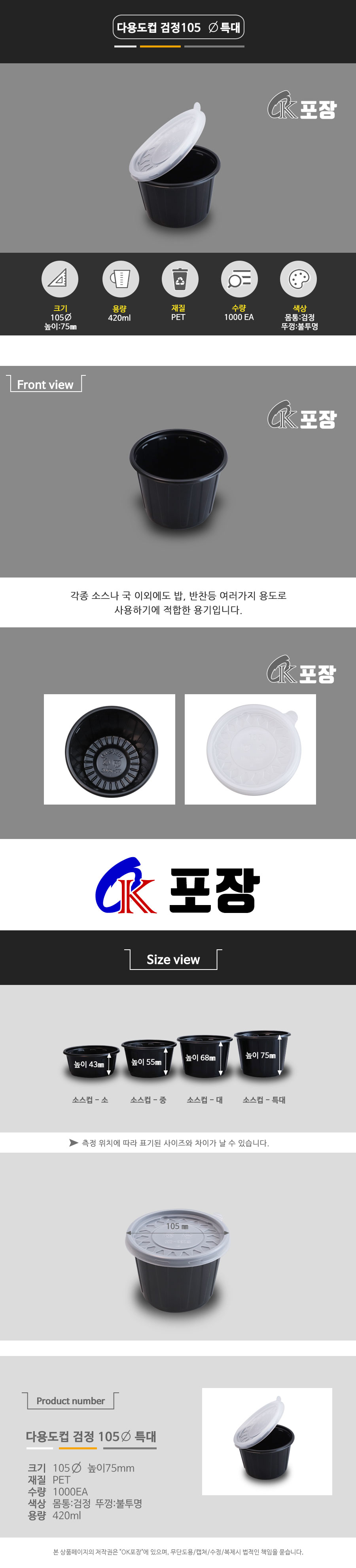 다용도컵 검정 105Ø -특대/ 1000EA/234