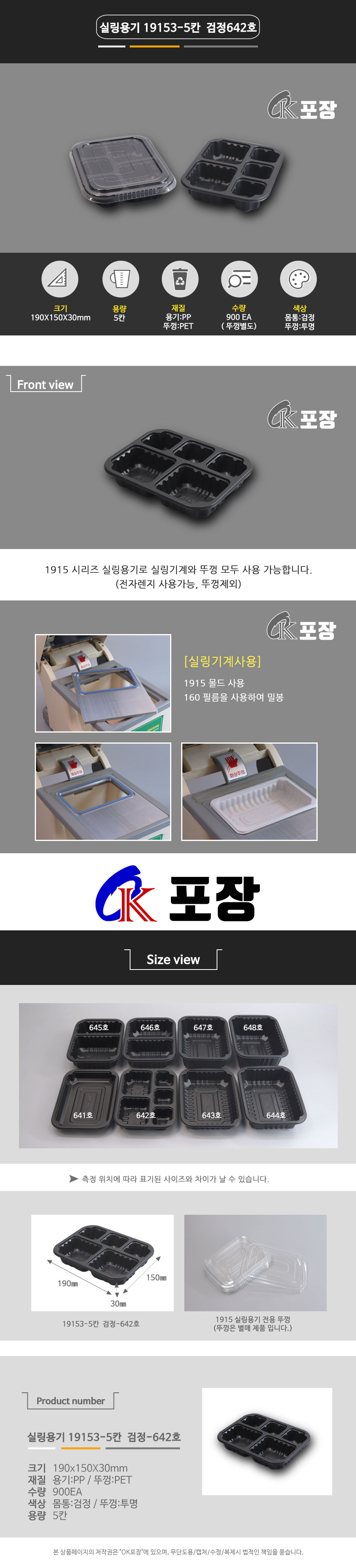 HG-642호-5칸 검정 900EA/포장용기