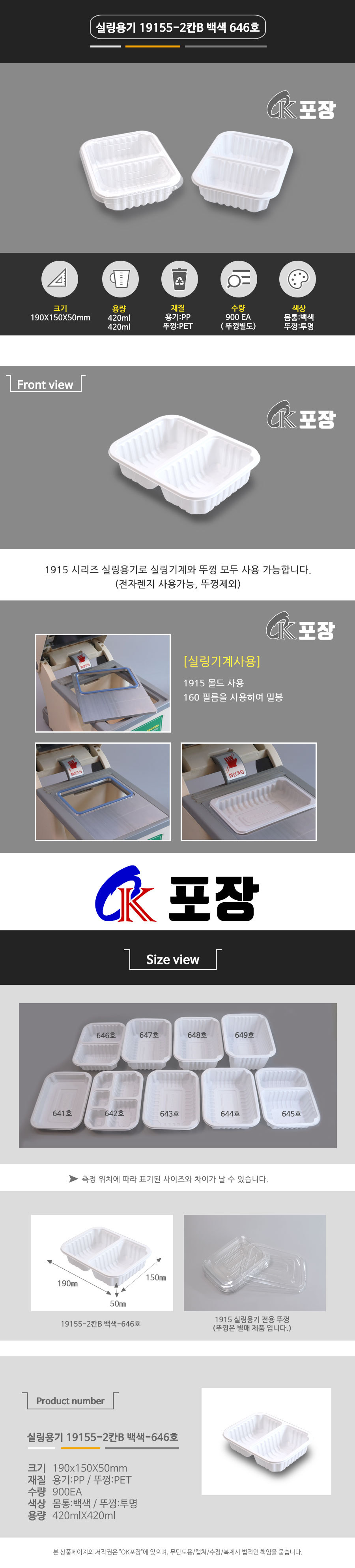 HG-646호-2칸 백색 900EA/포장용기