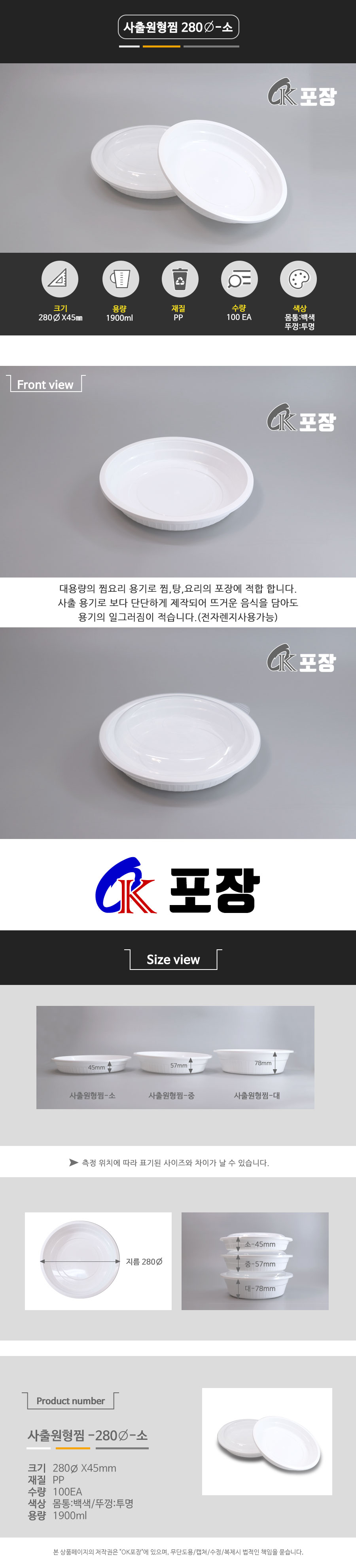 사출원형찜 280Ø -소 몸통+뚜껑 세트/ 100EA