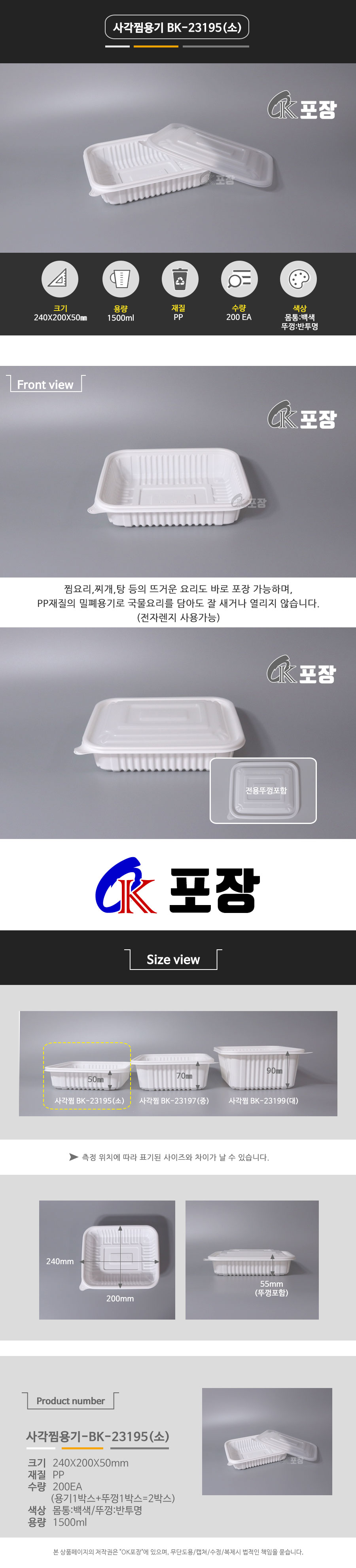 BK 사각찜 소 / 몸통+뚜껑 세트 / 200EA