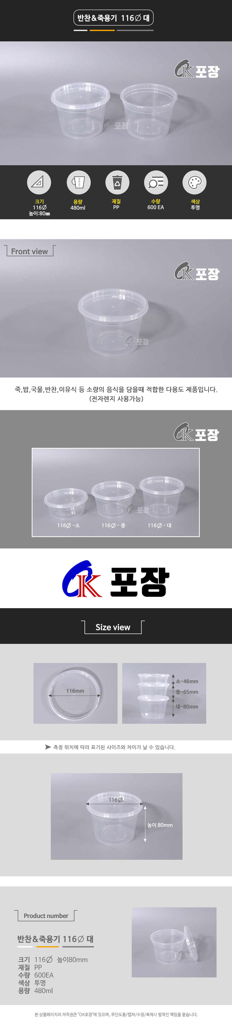 BW-116Ø -대 몸통+뚜껑 세트 / 600EA 반찬&죽용기