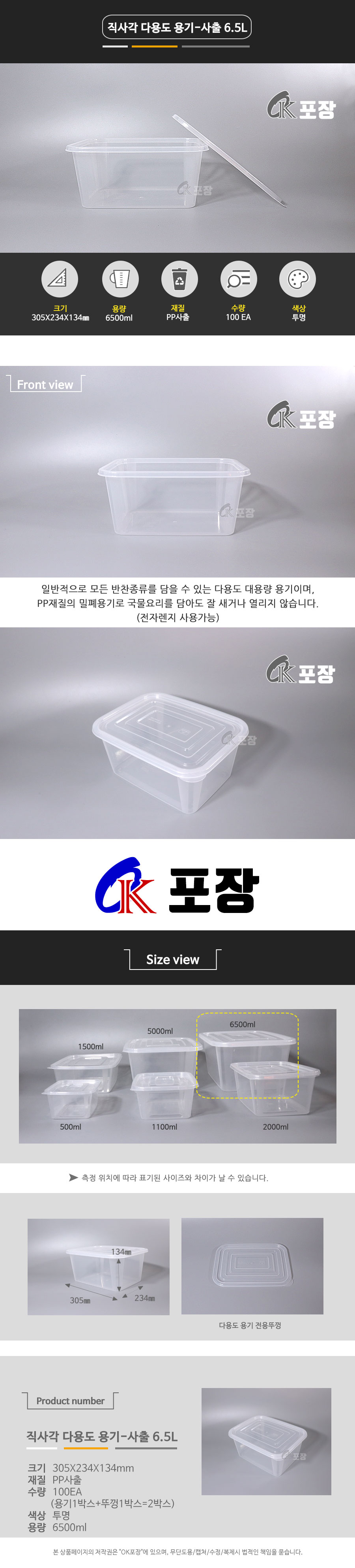 직사각사출-6.5L 몸통+뚜껑 세트/ 100EA /직사각 다용도 용기