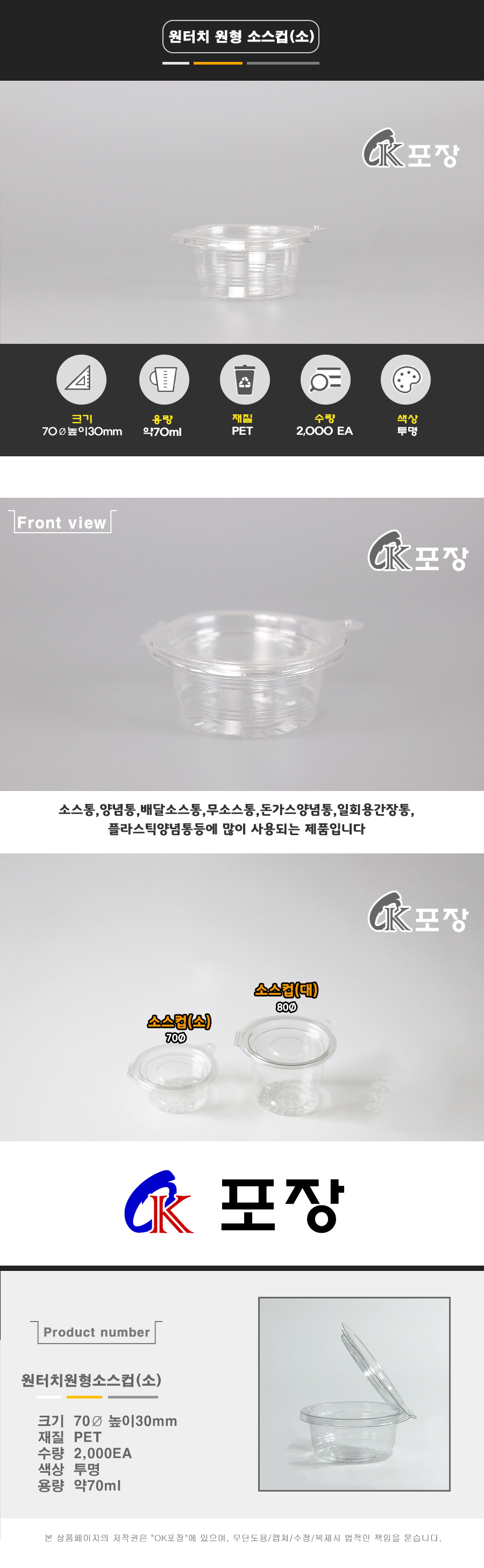 원터치 원형 소스컵 소스용기 -소 / 약70㎖ / 1,500EA