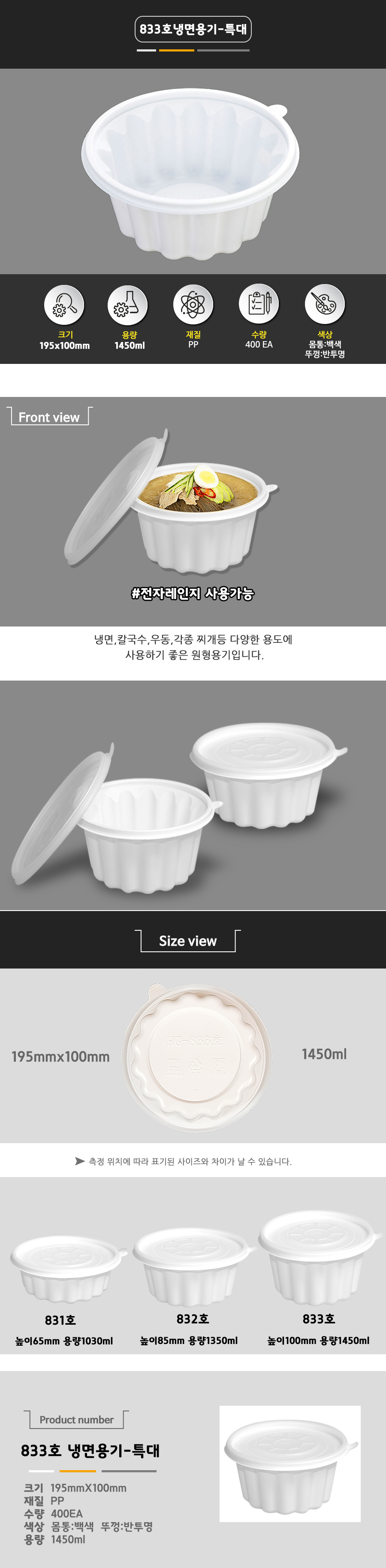 833호 냉면용기-특대 몸통+뚜껑 세트 / 300EA