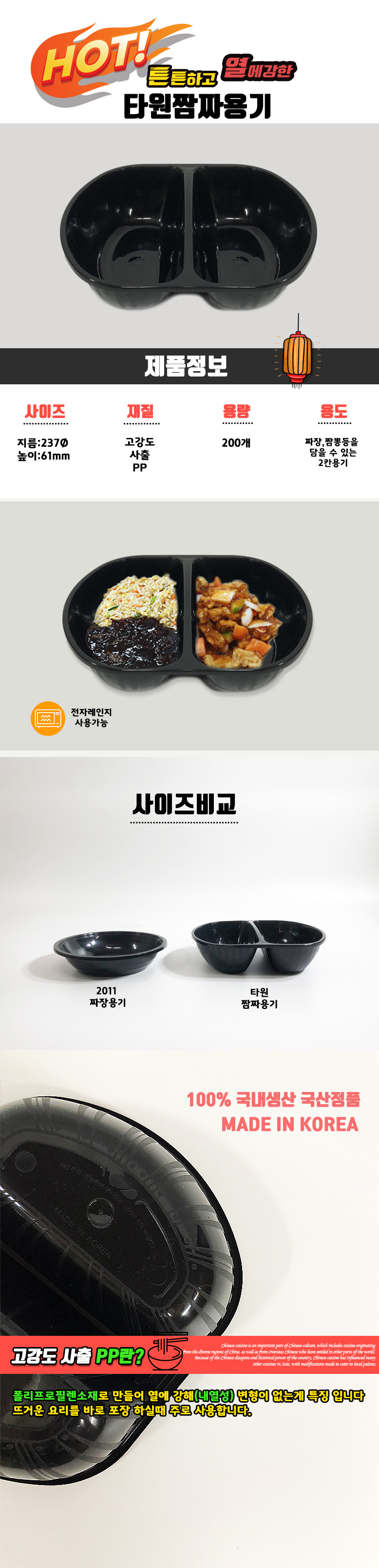 중화용기 타원짬짜면(검정) / 200개