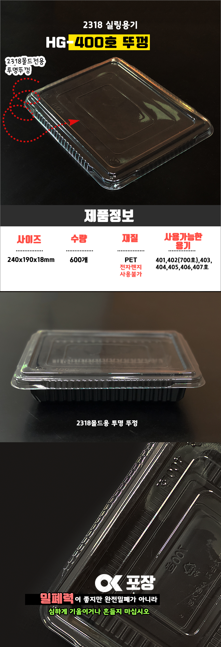 2318뚜껑 실링용기 400호 600EA/실링뚜껑