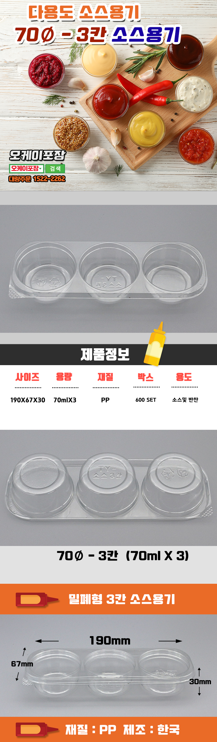 TY - 3칸 소스용기 / 원형 3칸 / 3칸 반찬용기 / 600EA