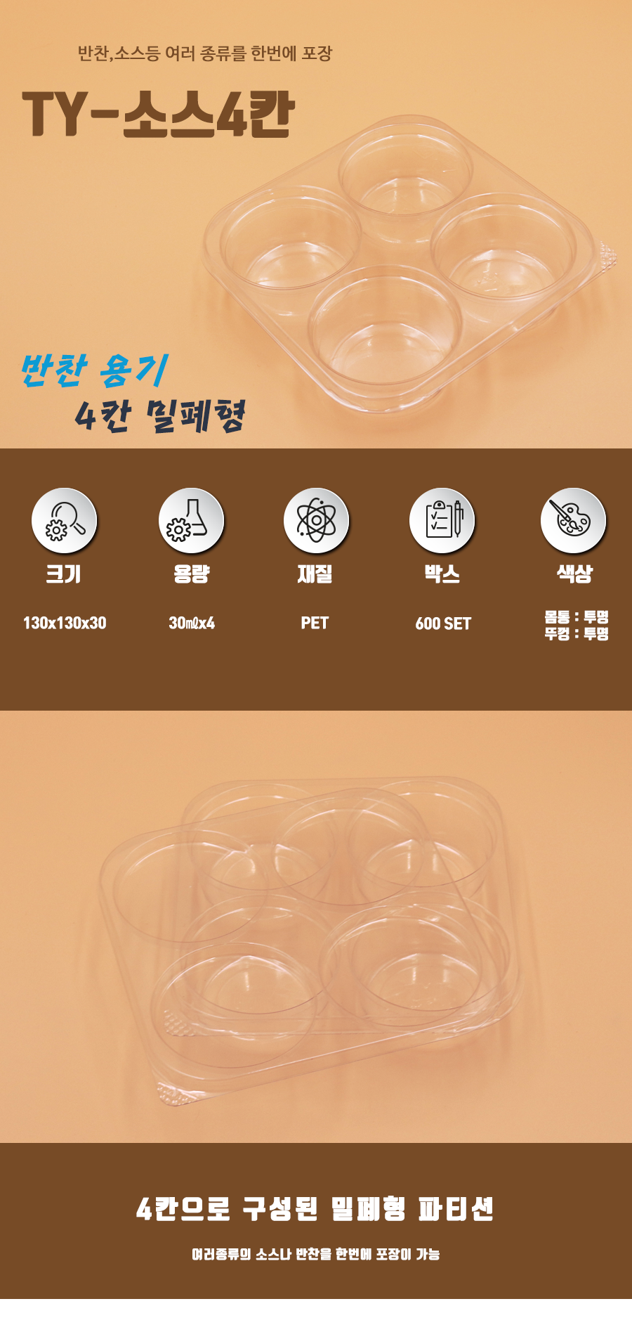 TY - 4칸 소스용기 / 원형 4칸 / 4칸 반찬용기 / 600EA