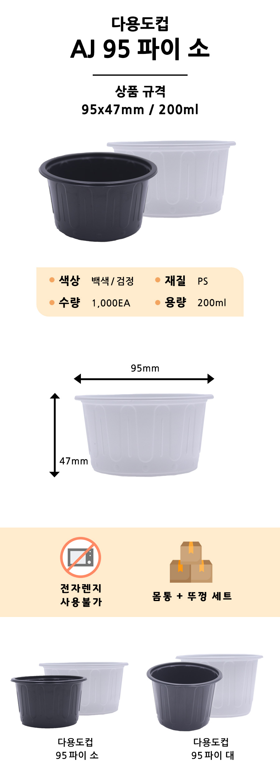 AJ 95파이 소 / 몸통+뚜껑 세트 / 1000EA