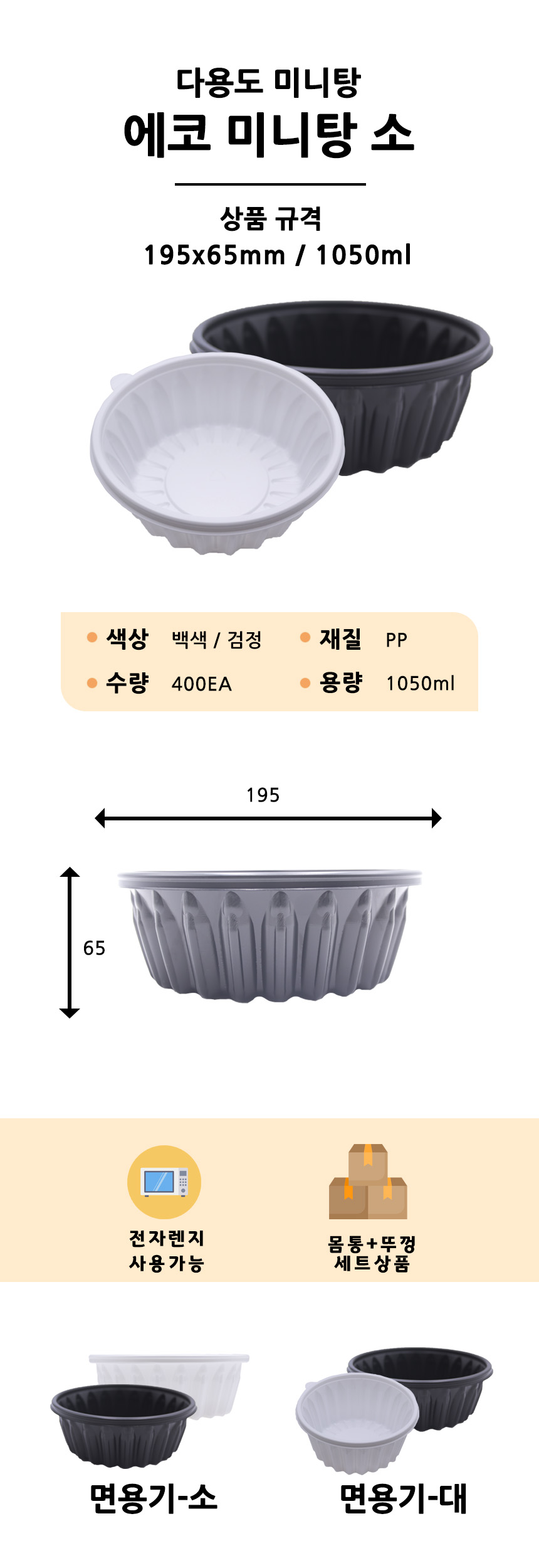 195파이 다용도 냉면용기 소 / 400EA / 몸통+뚜껑 세트