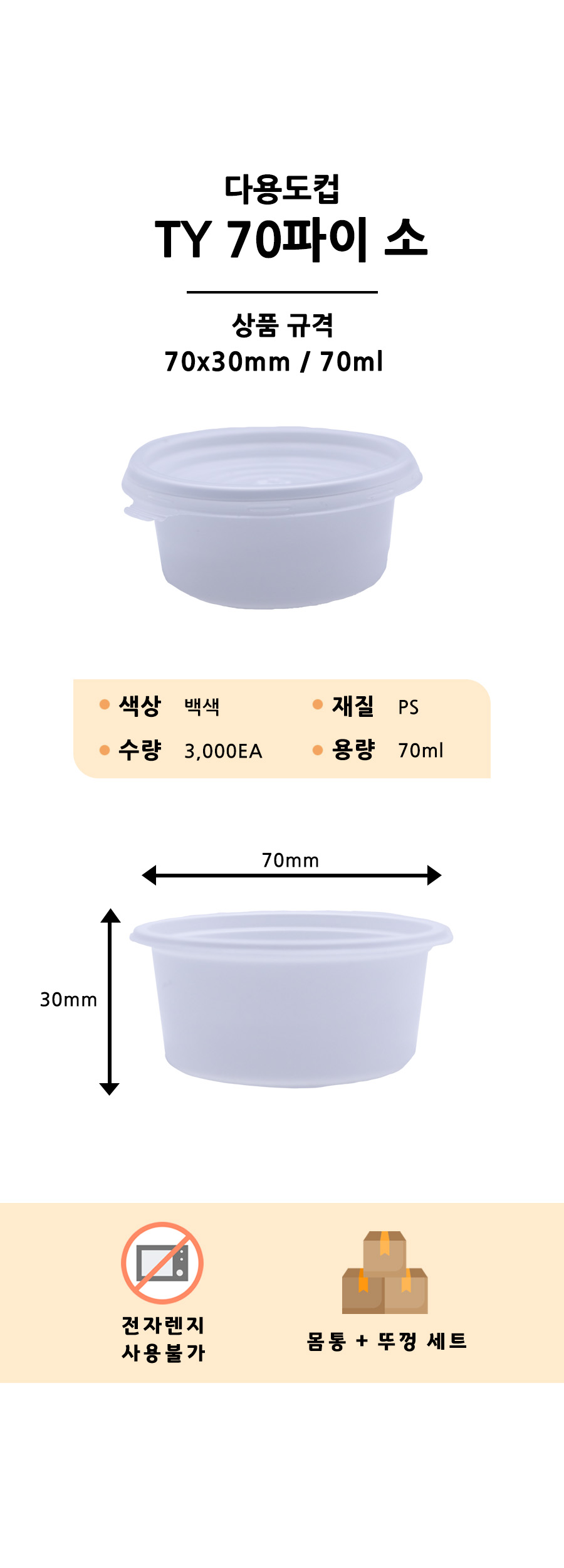 다용도 소스컵 / 70파이 소 / 몸통+뚜껑 세트 / 3000EA