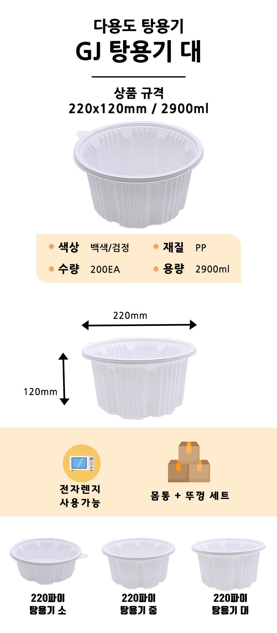 220파이 다용도 탕용기 대 / 200EA / 몸통+뚜껑 세트