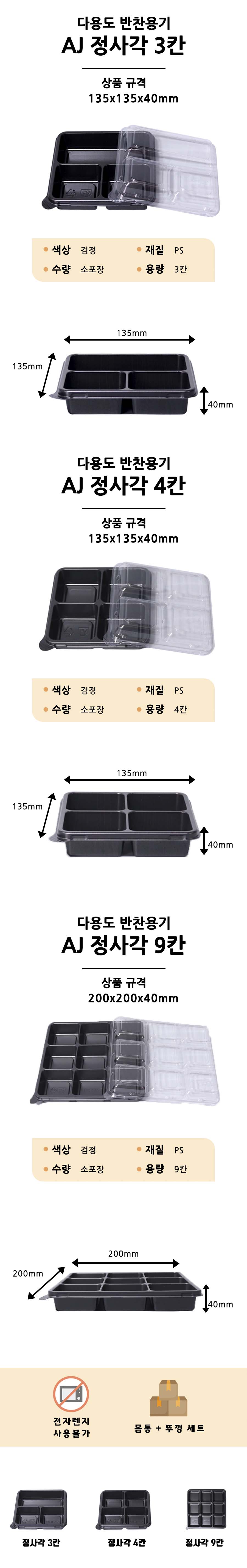 다용도 정사각 반찬용기 3칸, 4칸, 9칸 포장용기