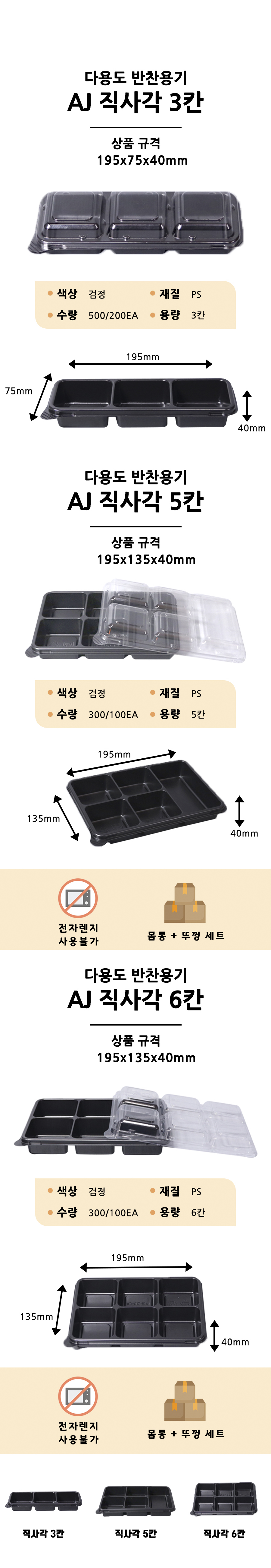 다용도 직사각 반찬용기 3칸, 5칸, 6칸 포장용기