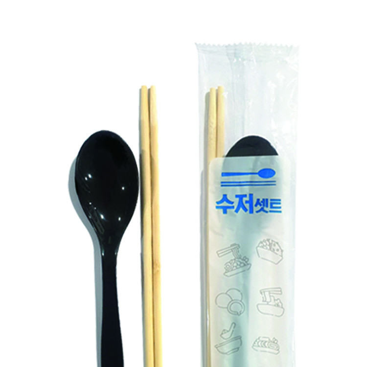 수저 젓가락이 하나로 같이 포장되어 있으며, 젓가락은 나무, 수저는pp소재입니다.