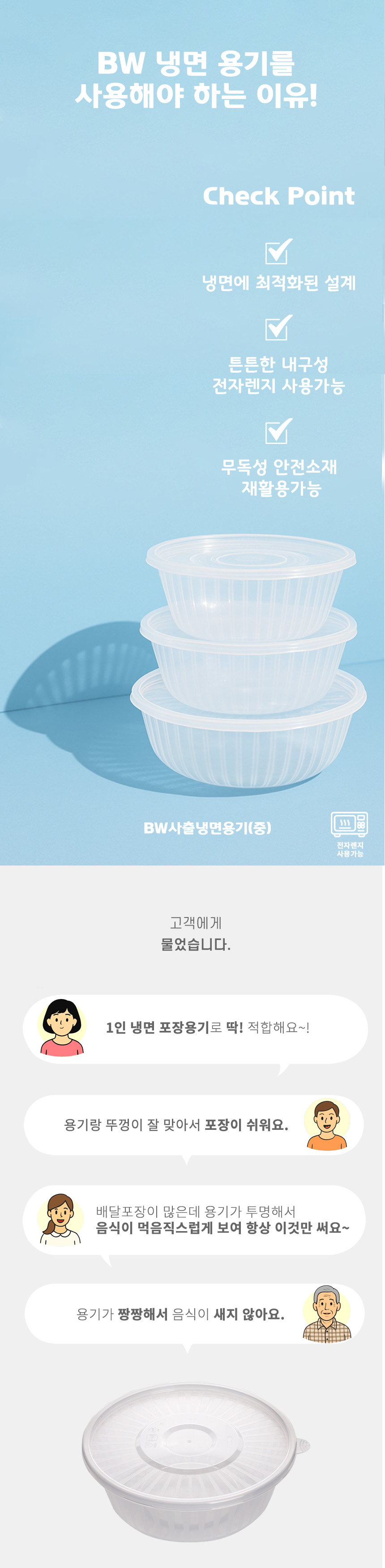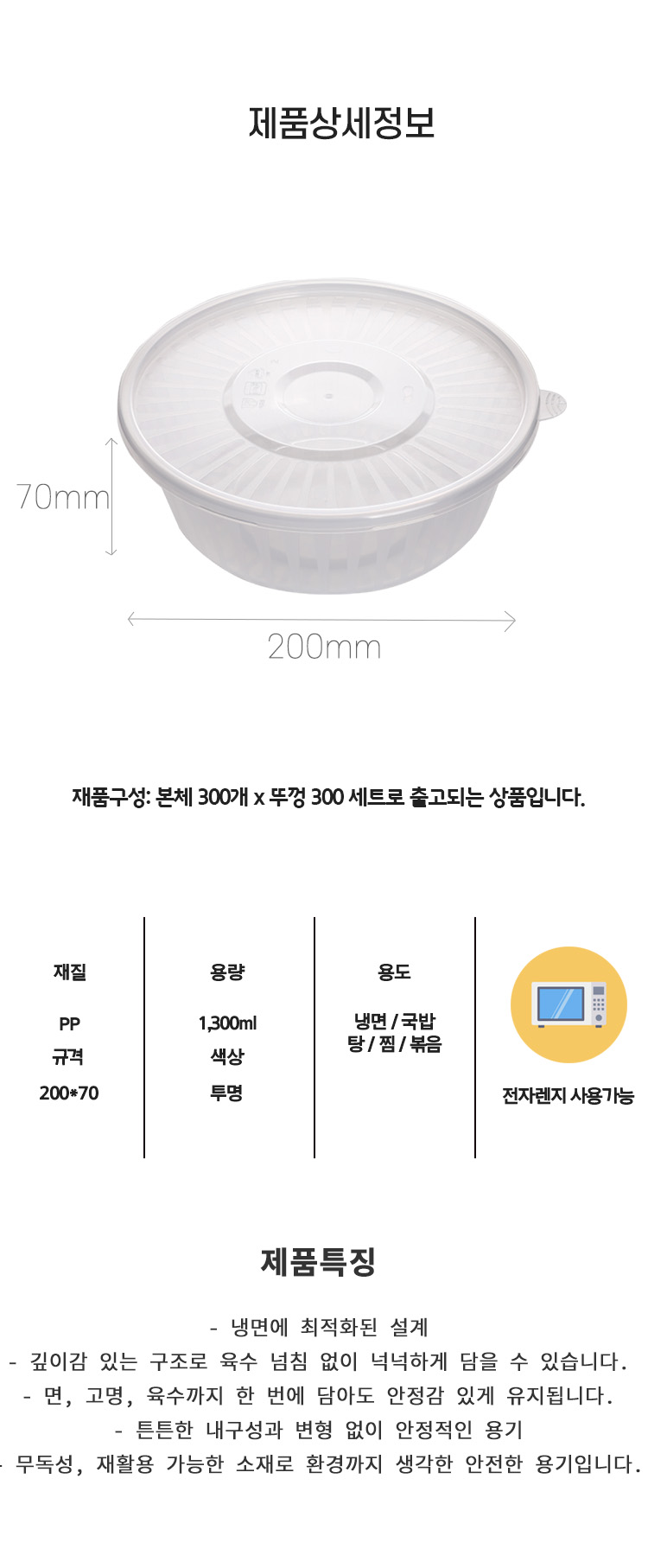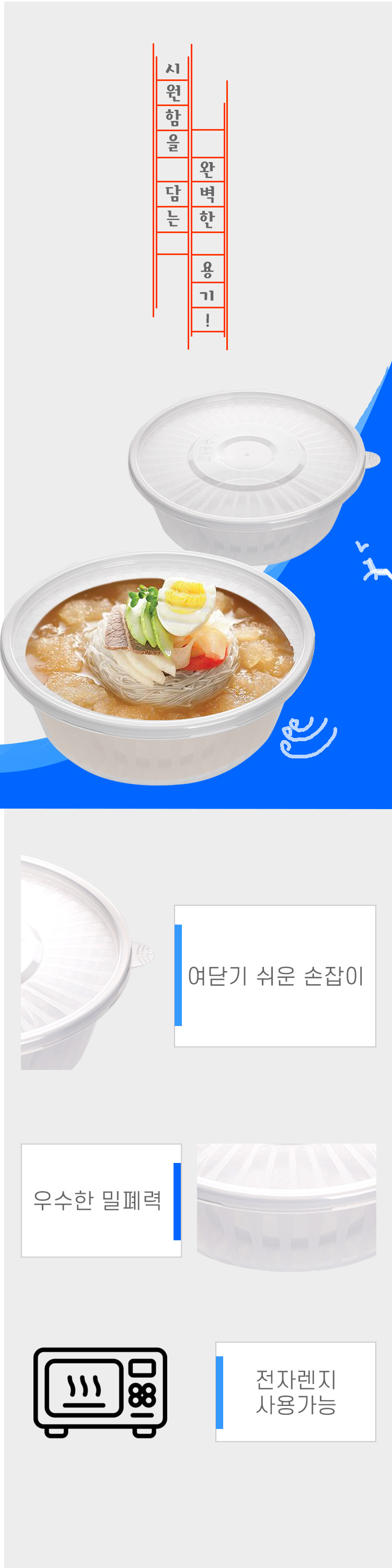 사출 냉면용기(중) 1인용 포장에 제일 많이 사용되는 용기입니다.