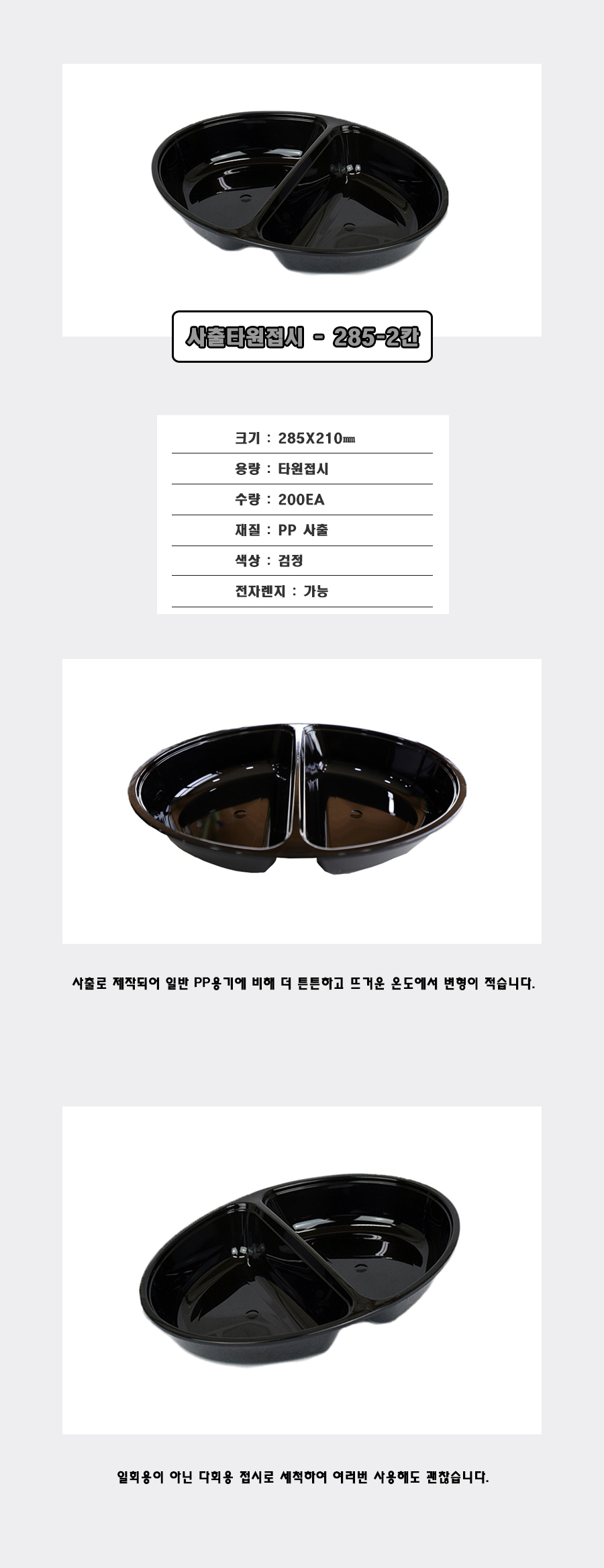 사출타원접시 285-2칸 (검정) / 200EA