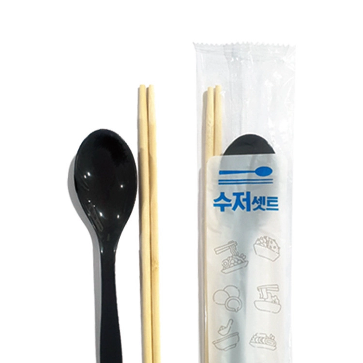 수저 젓가락이 하나로 같이 포장되어 있으며, 젓가락은 나무, 수저는pp소재입니다.